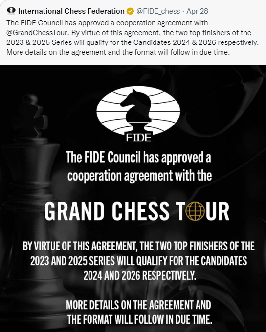 Do you really think FIDE would break a formal agreement if there was one, and GCT were silent about it? We had a tentative one, but unfortunately it did not work. Not our fault that's the most I can share publicly. |