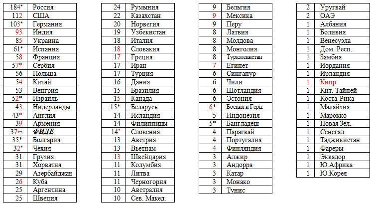 Наконец, за эти полгода случилось и несколько гроссмейстерских трансферов (почему-то четыре пришлись на январь). Но все они "негромкие", поэтому я их и не "афишировал" (за исключением, кажется, трансфера греческого гм Келиреса, в результате которого первым гроссмейстером обзавелся Кипр).