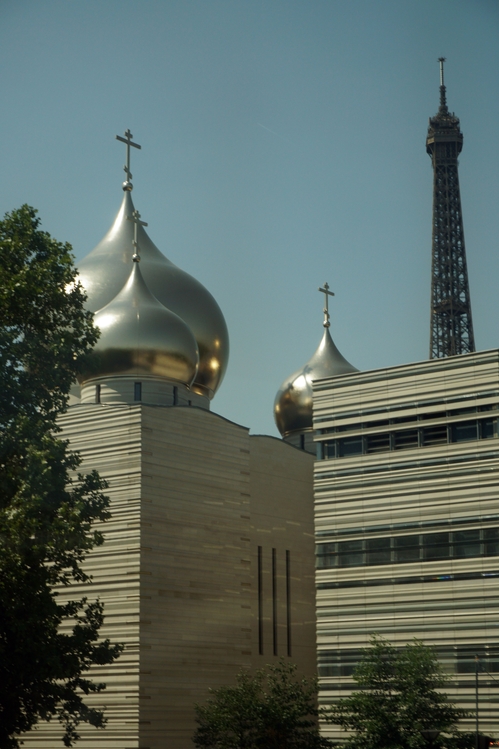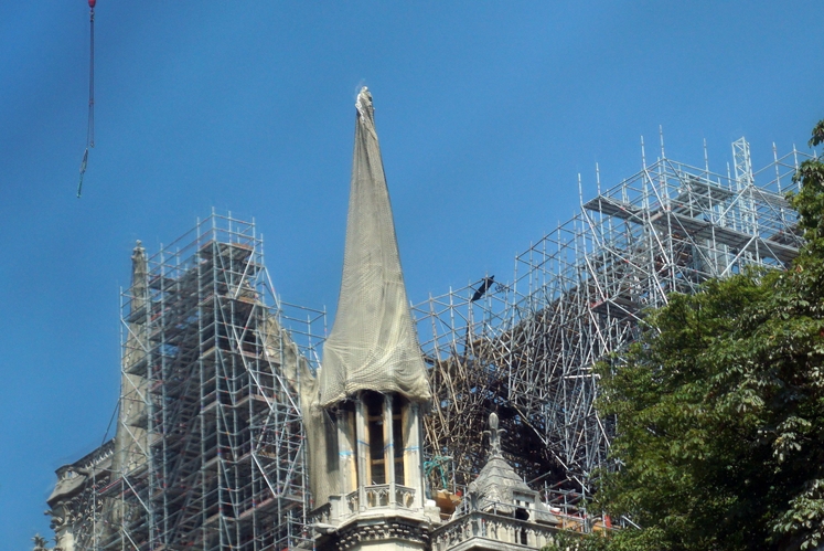 В какой-то момент вдруг толпа, что сидела по другую сторону прохода, повскакивала с мест и пробежала к выходу на палубу и все стали там что-то фотографировать. Изнутри я даже не мог понять что, так как было не протолкнуться. А катер-то движется, объект съемки удаляется. Пришлось выбежать на палубу с нашей стороны, обежать нос катера и тогда я увидел - они снимали сгоревший год назад Нотр-дам, котоый сейчас был весь покрыт строительными лесами. Я успел через их головы снять только макушку собора. Вот и все фото с Сены.