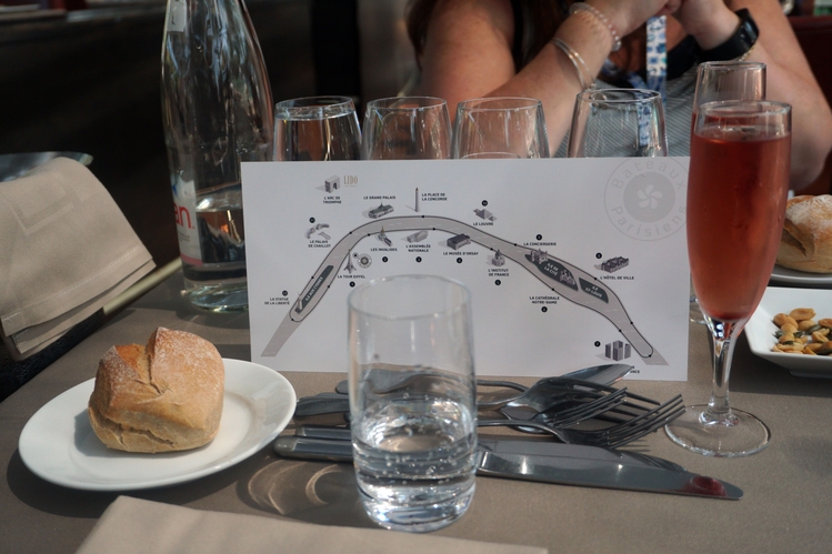 И нас уже ждали стаканы с водой, с вином и булочка, а также план Сены.