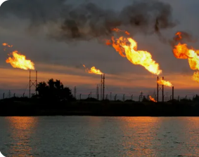 Разумеется - попутный газ. Который жгут на нефтяных месторождениях (все фотки, кроме последней), но также и в практически любой нефтепереработке (последняя). Я и на те, и на другие газовые факелы насмотрелся в свое время.