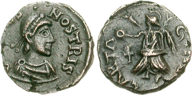 очень наглядно, по 3 всего монеткам, можно наблюдать, как чума христианства сжирает нахрен всю эстетику, надо которой до того люди трудились тысячу лет. (оригинал - самый конец 3 века, его плохая копия из карфагена младше лет на 30, бонифаций - середина пятого).