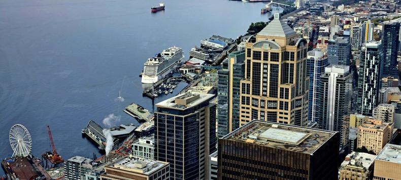 На Кетчикане Флорида у нас закончилась. Перед возвращением в 6 утра в Сиэтл по плану было посмотреть ночную канадскую Викторию. На это отводилось всего 4 часа - в 8 вечера корабль должен был приплыть и ровно в полночь уже отплыть. Но из-за непогоды и сложности навигации он сильно опоздал в порт, приплыл когда уже было больше 9 вечера, а еще же таможенные оформления, так что и эту экскурсию отменили. Мы с женой уже совсем себя плохо чувствовали, поэтому даже не вышли на палубу сделать ночные снимки порта. К тому же нужно было паковать наш чемодан. На следующий день, кажется, в 8 утра, нас, купивших автобусную экскурсию по Сиэтлу, должны были собрать в зале, а чемодан мы должны были еще вечером выставить в коридор под дверь, его унесут и погрузят в экскурсионный автобус.