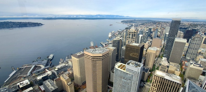 Экскурсия по Сиэтлу прошла спокойно. Сначала было очень темно там, где мы ездили, из-за множества небоскребов. Очень мощная японская община, даже названия улиц продублированы на японском.