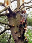 Третий раз был уже летом. Шторм сломал пополам высокую сосну впереди дома, у нее на высоте где-то 5 метров начиналась толстая развилка. Вот в этом месте и сломалась сосна. Обе огромные ветви упали прямо перед выходом из дома и не только перерубили провода, но и перегородили выход через переднюю дверь, а гаражная дверь электрическая теперь не работала. Поднять ее вручную у нас не получалось, очень тяжелая, специальный механизм для таких случаев чего-то не работал. Кроме того, рядом ударила молния и сгорел «разрядник», который должен был сеть в доме защитить. У меня тогда сгорело почти все компьютерное в доме и один регулятор света. Ветки сосны полностью перекрыли вид из окна кухни. Рабочие приехали распиливать этот бурелом на следующий день, но птички успели освоиться с новым окружением и я тогда наделал из окна новых фото, теперь птицы прямо сидели перед окном на веточках и смотрели что мы делаем. Мне даже так понравилось. Показал Кузе, он новую обстановку мгновенно принял к сведению, даже не сказал ни мяу, ни вау, но гулять я его в эти дебри не пускал, а то еще заблудился бы. Поищу, может, сохранилось какое-то фото вида из окна кухни когда нас накрыло. Добавлю сюда.