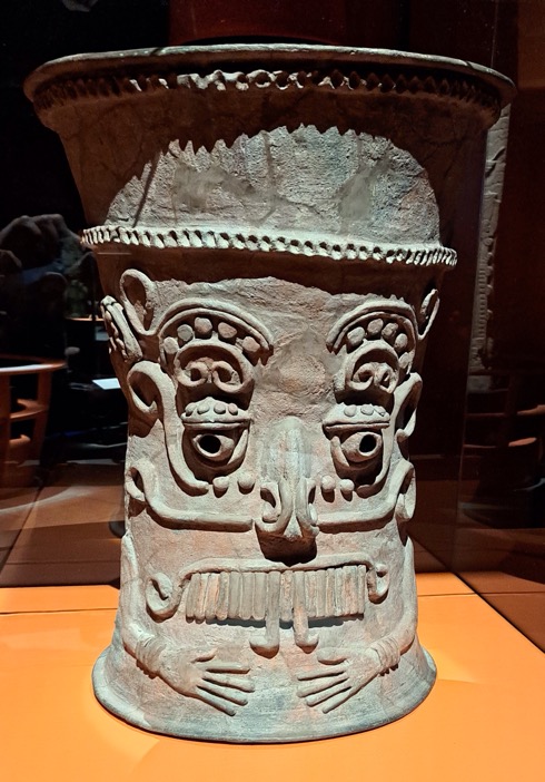 Билеты не дешёвые - 27$ (мы разбалованы тем, что в Вашингтоне все смитсоновские музеи бесплатные), но тут имела место целая система скидок для разных возрастных категорий посетителей. Мы все трое прошли как seniors, заплатив на 3 канадских доллара меньше, а если бы это была среда, то скидка была бы 20%. Выдали нам один буклет на троих и спросили хотим ли мы план музея. Мы почему-то решили, что он нам не понадобится так как времени у нас не так уж много и всё мы никак не успеем посмотреть. Хотелось обязательно посмотреть выставку самой древней мезоамериканской культуры ольмеков, жившей задолго до майя. А остальное - что успеем, тем более, что всякие черепки и горшки нам не очень интересны. То, что мы не взяли план музея, было нашей большой ошибкой. |