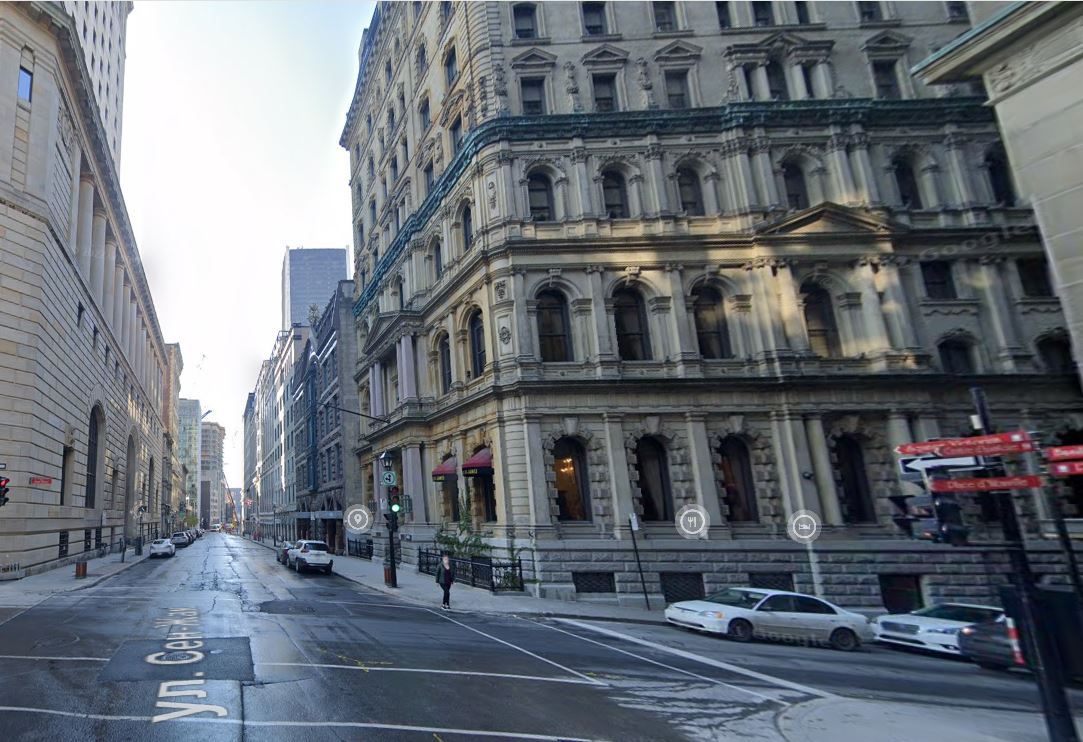 Да ладно, чай не бином Ньютона, здание - Royal Bank Tower, на указателе написано Place d'Youville. |