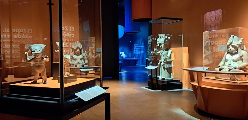 Рядом с гардеробом был вход в зал и мы тут же погрузились в волшебный мир археологии. Минут через 15 мы уже все в этом зале посмотрели- какие-то мелкие поделки, расписные плитки, все совершенно невпечатляющее было. Вышли из зала, увидели лестницу и только начали по ней подниматься как тут же откуда-то взялась девочка и на смеси французского с английским объяснила, что туда нам нельзя, показала рукой на французскую табличку. Мы извинились и сказали, что хотим посмотреть ольмеков, она начала что-то сложно объяснять, но мы запомнили только начальные инструкции куда начать идти, а там уже встретили какого-то араба- охранника, который на таком же английском объяснил нам, что мы должны попасть в другой павильон, для чего нам нужно сделать еще несколько поворотов в коридорах, которые приведут нас в подземный переход, пересечь под землей улочку и там подняться в другое здание, купленные билеты и там будут действительны. Как я сейчас понимаю, музей имеет 4 или 5 павильонов - отдельных зданий, но почти все они сейчас не работают, находятся то ли на ремонте, то ли на реконструкции, и тот павильон, куда мы попали, был чуть ли не единственным функционирующим, но нам и его хватило с головой. Он многоэтажный. А башмак и бутылка, наверное, были на реставрации в других павильонах, мы их не увидели. Очень хорошо, что мы сдали рюкзаки, даже налегке нам пришлось очень тяжело. Покажу пока несколько фотографий из ольмекской галереи.