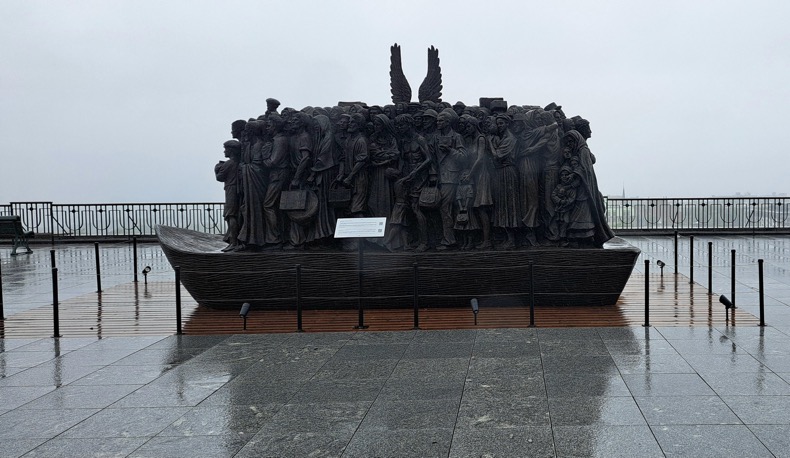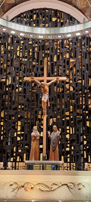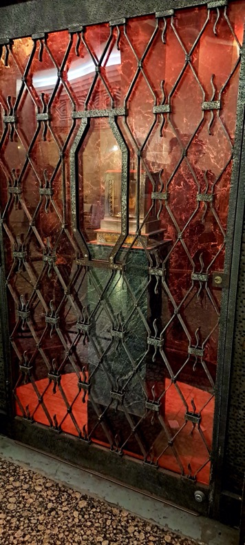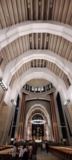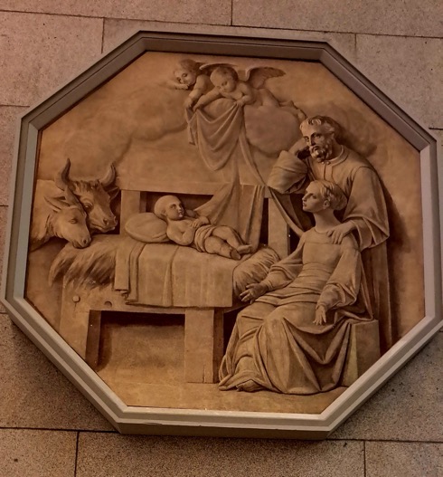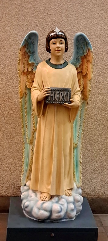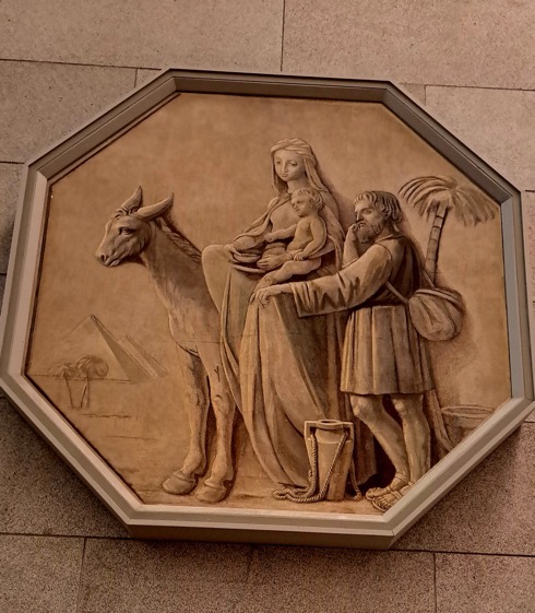 Сфотографировать храм снаружи у меня так и не было возможности, а, говорят, что он снаружи грандиознее, чем изнутри. Но в интернете есть множество фотографий. Единственный «наружный» снимок я сделал, не выходя на балкон, стоя на пороге этого балкона. Это копия знаменитой скульптуры «Angrels Unaware» канадского скульптора. Этих копий в мире немало, есть и в США несколько, а оригинал нынче стоит в Ватикане.