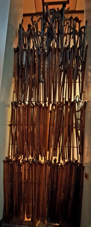 А я пока покажу костыли вылечившихся верующих, которым они больше не понадобились, и святыню - постамент, на котором хранится сердце целителя - святого Андре Бессетта.
