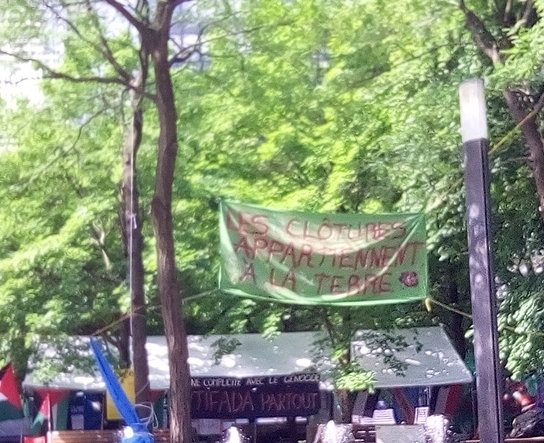 Видели мы подобное сочетание приличных и неопрятных не только возле нашего дома. В некоторых местах над такими бездомными висели плакаты. Один я сфотографировал, чтобы потом перевести. Перевод у меня получился, что-то типа «ограды/границы принадлежат земле/ территориям». Но что этим хотели сказать, мы так и не поняли. И кто хотел. Имело ли это к бездомным отношение.
