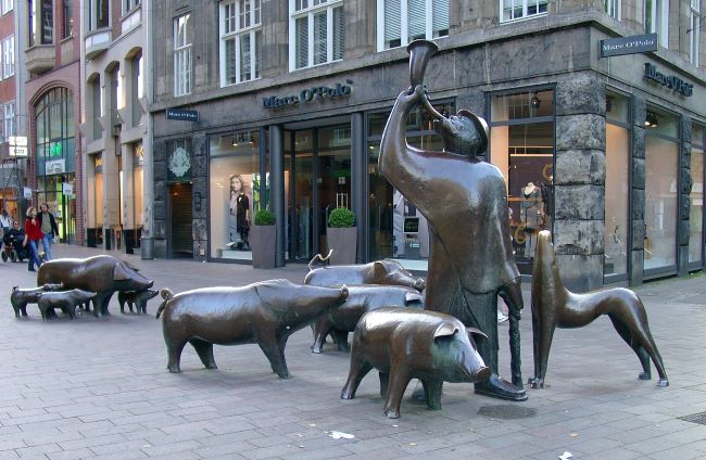 Бремен: вчера гуляли по центру. Видели статую свинопаса вместе с многочисленными свиньями.
