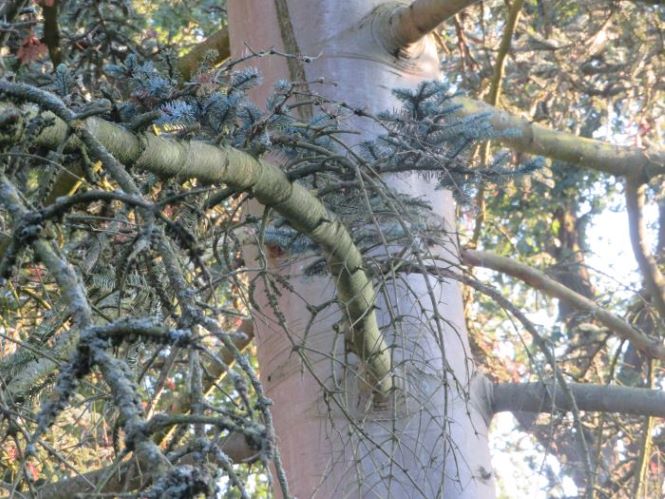 | Хвоя на ветке с соседнего дерева, мне кажется (ждём Женю с объяснением), а кора в точности как у лесной разновидности бука. |