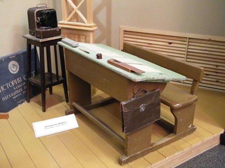 По поводу крючков на этих партах. Жена говорит, что в ее школе (в Читинской области, она дочка военного) парты были с крючками, крючки для портфелей, второй обуви не было, но ими никто не пользовался. |