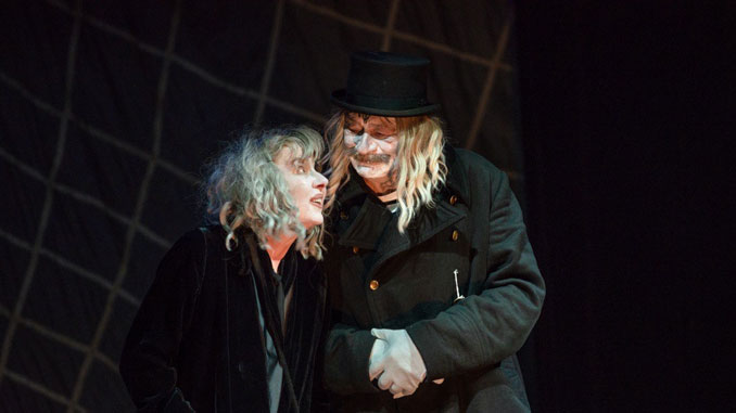 Для лучшего ознакомления с литературной классикой я сходил сегодня в театр. Классика была советская, - пьеса "Старомодная комедия" Арбузова, неоднократно экранизированная (Тенин и Сухаревская, Фрейндлих и Владимиров). Я с этой пьесой знаком не был, так что смотрел с чистого листа. Играли бывшие актёры МХАТа Назаров и Васильева, постановка современная. Как сказал Назаров, "Пригласили режиссера Георгия Мнацаканова, а он, в свою очередь, познакомил нас со своими друзьями-художниками и предложил новые художественные решения". "То, что нам предложил режиссер, повергло нас в эстетический шок, с которым мы долго сживались, смирялись, а потом воодушевились и принялись за работу".