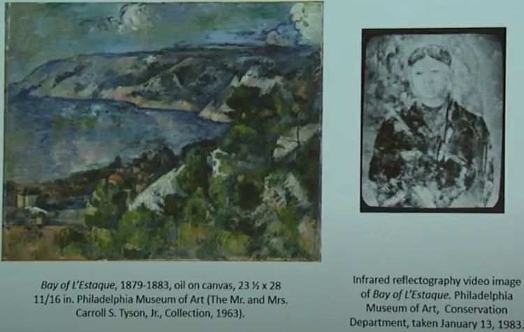 Как известно, в музее искусств Филадельфии есть три портрета мадам Сезанн. Но, оказывается, под заливом Л'Эстак из того же музея обнаружился четвёртый портрет жены. Как пошутил куратор, художник решил утопить жену в заливе.