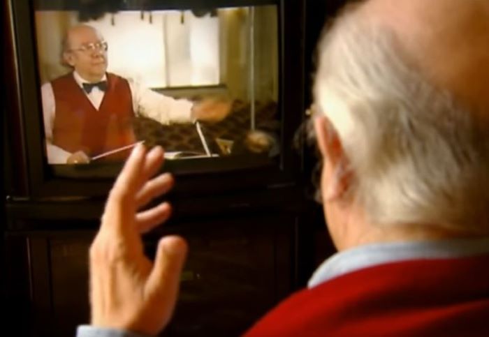 Мне это скорее напомнило про методы женщин, которые должны внушить мужьям, что именно они были инициаторами и вдохновителями покупки нового холодильника. Но можно посмотреть, как он это воплощает на практике, какая реакция оркестра.
