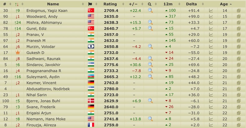 Не знаю как лучше назвать такую топ-20 молодежную таблицу. Мужающие надежды? Новейшая смена?