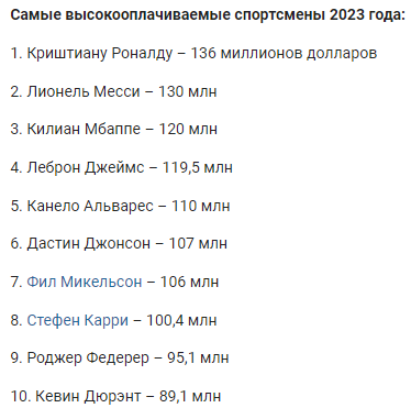 | Forbes опубликовал рейтинг спортсменов с самыми высокими доходами. |