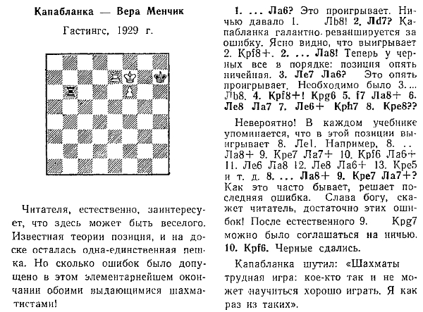 Мало кто оценит элегантные па белого слона. В одном варианте он делает связку, а в другом защищает ладью от связки. А пешка! Одним незаметным движением она освобождает диагональ для связки в первом варианте и одновременно защищает поле f1 от черного ферзя во втором.