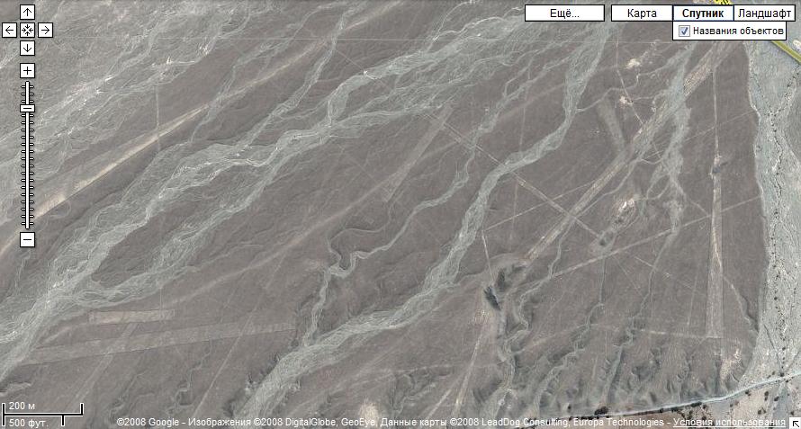 Если у кого возникнет желание, вот координаты: 14°41`18`` ю. ш. 75°07`22`` з. д. / 14.688333° ю. ш. 75.122778° з. д. Это примерно на 11` западней и на 8` северней города Наска (если вики правду говорит). |