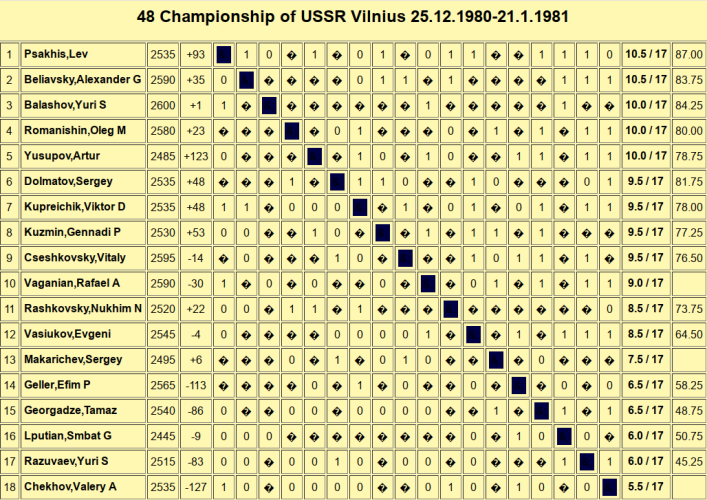 45 лет назад, 21 января 1981 года в Вильнюсе завершился очередной чемпионат СССР по шахматам.