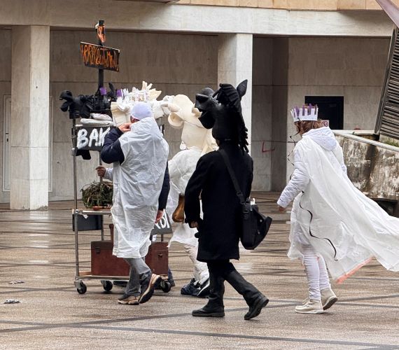 В Испании мы празднуем карнавал, и я только что наткнулся на группу людей, одетых в костюмы шахматных фигур.😁 |