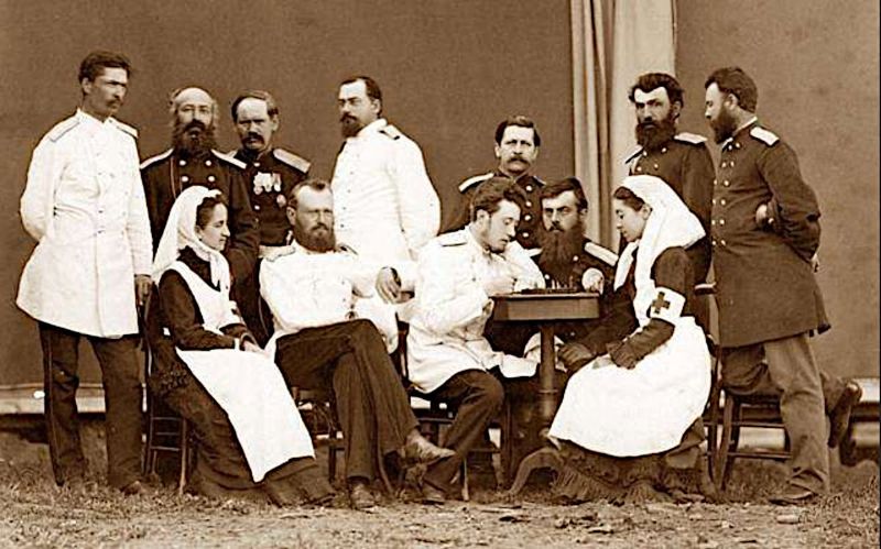 Группа русских медицинских офицеров и сестёр милосердия».