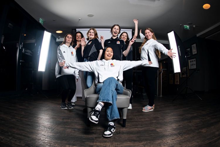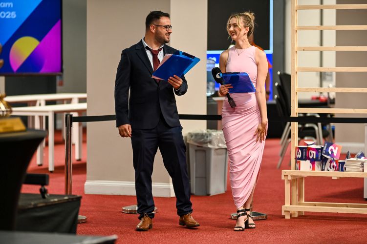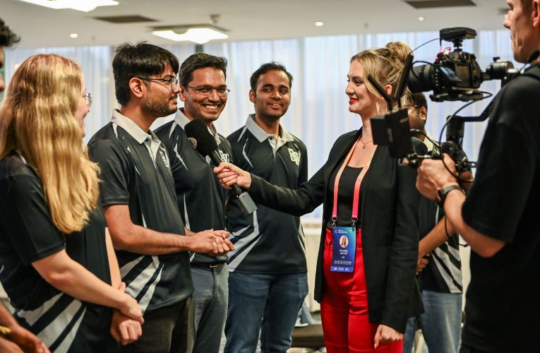 Шарлиз ван Зил — менеджер по маркетингу ФИДЕ, она занимается всем: интервью, комментированием и ведением. Здесь она берет интервью у команды MGD1 после их победы в Rapid и выглядит «Pretty in Pink» перед церемонией закрытия в Лондоне |