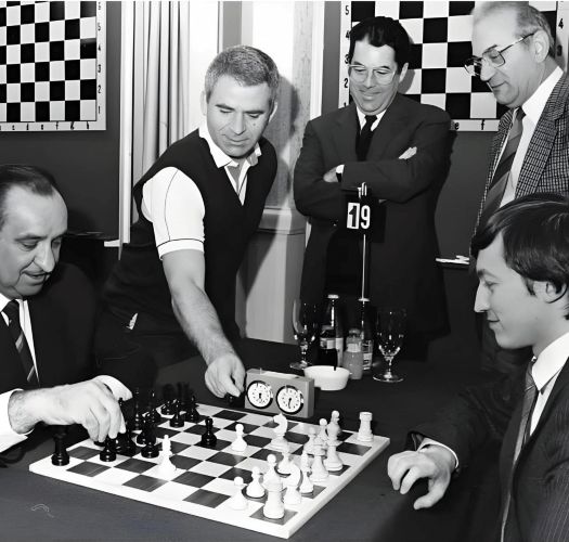 Москва, 13 апреля 1981 года. В седьмом туре международного турнира, проходившего в советской столице, Эухенио Торре (Филиппины) играет с чемпионом мира Анатолием Карповым (СССР). Партия завершилась вничью после 48 ходов. |