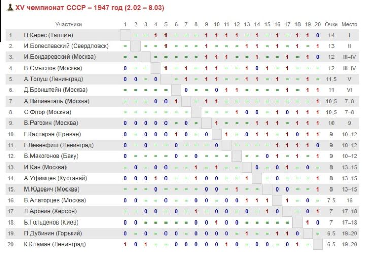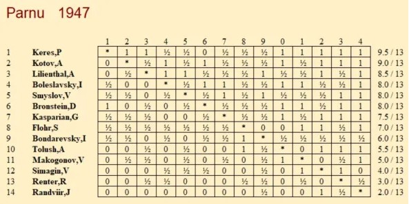 И хотя на вопрос "почему Керес не стал чемпионом мира?", Спасский, фрондируя, отвечал на это еще в семидесятые годы фразой — «ему не повезло так же, как его стране», тут больше ёрничества, чем реальной оценки. Мне кажется, прежде всего, причина в том, что у Кереса не было вот этого отчаянного желания, даже необходимости быть первым. Не было. Можно выигрывать и без этого, если ты на голову выше всех, но Керес был на пике ровней самым великим, но не превосходил их. Конечно же, он не уступал, а пожалуй превосходил своего друга Эйве, который стал чемпионом. Но, скажем, Решевский не уступал Кересу — просто живя в Америке, не имел возможности посвящать себя шахматам. А Керес мог, и когда мы слышим слова о трагической судьбе эстонского гроссмейстера, это выглядит неким преувеличением. Заставили проиграть Ботвиннику в матч-турнире 1948? Спорное утверждение. Скажем так, не удивлюсь, если узнаю, что на Кереса оказывалось сильное давление (хотя никаких материалов за столько лет так и не появилось). Но Ботвинник реально был сильнее в те годы. Он получил особую бронь от советского правительства и работал над шахматами даже во время войны. Он много играл с сильнейшими советскими шахматистами, в то время как Керес за годы войны сыграл разве что два десятка партий с достойными соперниками. Ботвинник не случайно выиграл чемпионат СССР-1945 с результатом 15 из 17, а потом и Гронинген-1946. Да, Кереса в тот же Гронинген просто не пустили — последствия пристального внимания к его турнирным выступлениям во время войны. Но всё же, будем честны — Ботвинник был реально сильнейшим в те годы.