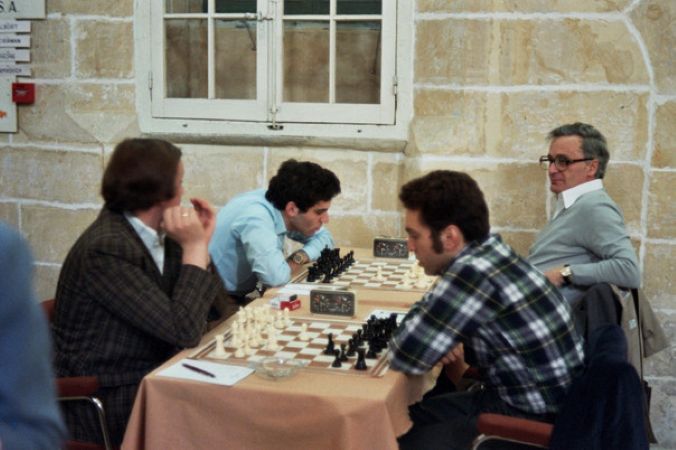 | На 4-й доске дебютант советской команды, 17-летний Г.К тонко переиграл в глубоком эндшпиле 57-летнего Шамковича. Ветеран не мог не отдать должное рассудительности и высочайшей технике реализации преимущества, которую продемонстрировал новый советский шахматный вундеркинд. «Этот мальчик точно станет Чемпионом Мира!» – сказал Леонид Александрович по окончании партии. |