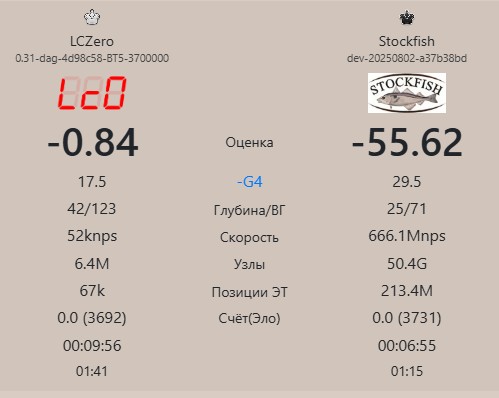 | Ну пока что стокфиш выиграл 3/5 стартовых пар партий. |