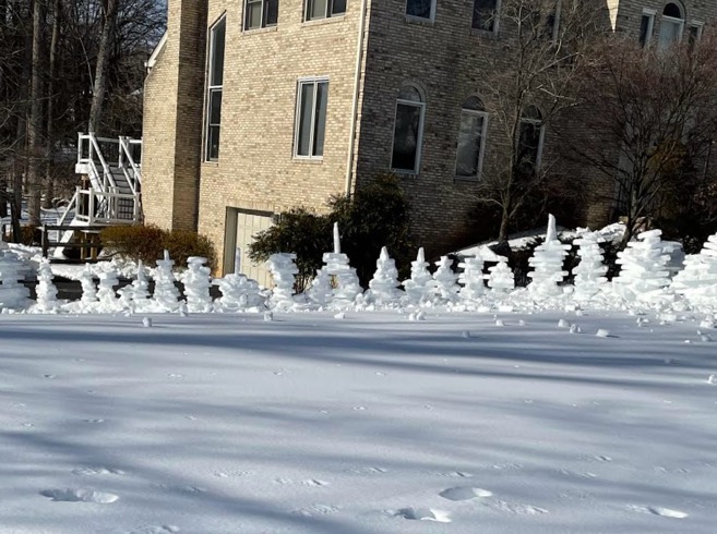 Нашел дома другую алюминиевую трубу, отрезал нужный кусок, кое-как воткнул, обмотал липкой металической лентой, чтобы конструкция на трубе не проворачивалась, как флюгер, подпер временно двумя досками (третьей не нашлось) и привалил дополнительным снегом. Может, какое-то время продержится. Две недели плюсовых температур не обещают, мой сугроб с досками может продержаться, плюс на выходные может быть еще какой-то снег. Теперь нужно будет прорубать тропинку от почтового ящика к входной двери. Для нас и для Instacart, скорее всего придется у них заказывать продукты на дом долгое время. |