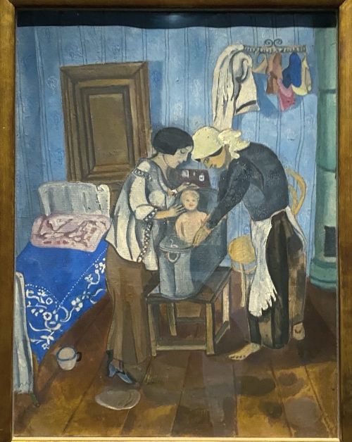 Марк Шагал, "Купание ребёнка", 1916. С выставки в Москве, фотография Дмитрия Бавильского. |