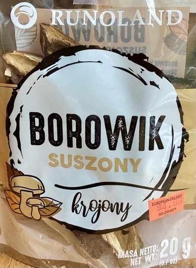 Жена сушенными грибами относительно недавно увлеклась, год назад. До этого сушенные никогда не покупали. За этот год я покупал белые сушенные грибы в некоторых американских магазинах и несколько пачек польских боровиков купил в «русском». Осталась одна неначатая пачка, жена теперь предлагает ее выкинуть. Вот такая: