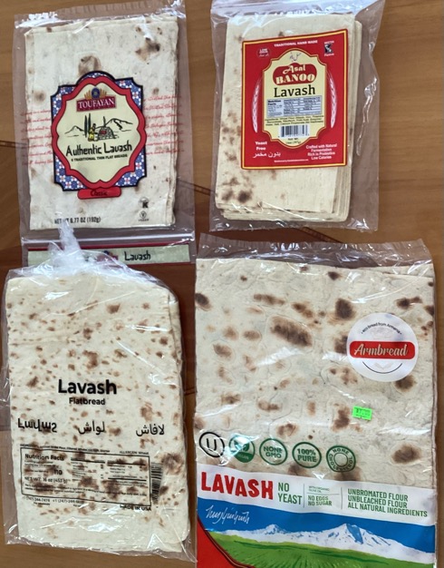 Но и много (наверное, треть) без дрожжей. Я не мог фотографировать в магазинах так как не взял с собой очки, а нужен четкий текст ингредиентов. Поэтому я купил в русском магазине армянский лаваш и в иранском три бездрожевых лаваша (не знаю их национальность).
