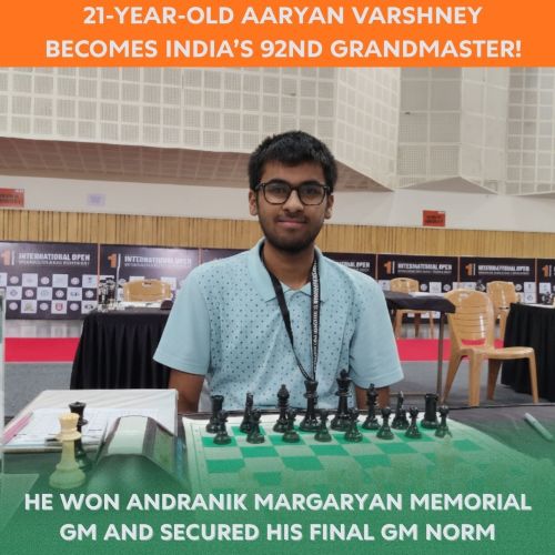 2026 год не заставил нас долго ждать — всего через 15 дней появился новый индийский гроссмейстер! Аарян Варшни стал 92-м гроссмейстером в истории страны.