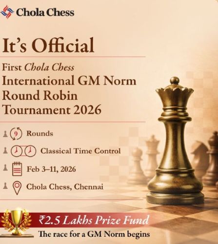 После запуска инициативы @CholaChess год назад, в рамках которой мы бесплатно предоставляем профессиональное шахматное обучение более чем 220 игрокам, мы рады объявить о нашей следующей крупной инициативе — организации нашего первого закрытого турнира на выполнение нормы гроссмейстера (GM norm) с 3 по 11 февраля в Ченнаи, спонсируемого группой Cholamandalam @Chola_Official.