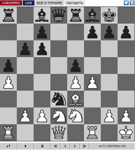 Контроль времени: 90 минут на 40 ходов, затем 30 минут до конца партии с добавлением 30 секунд на ход начиная с первого.