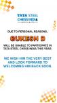 | Для меня большая честь быть приглашенным на турнир Tata Steel India Rapid and Blitz в Калькутте. Очень жду возможности сыграть против лучших игроков мира в моем любимом формате! |