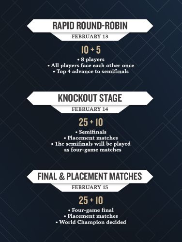 Я уверен, что и партии будут играться именно в соответствии с рапид-правилами (касательно отсутствия необходимости вести запись и наказания за невозможный ход).