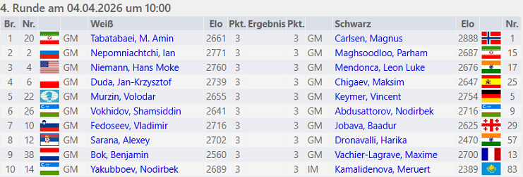 — Нет, я даю прогнозы на своём канале в Telegram. Я уже вчера написал прогнозы и поставил их на таймер. Сегодня утром я просто поделился ими с аудиторией. Я ожидал, что Гири и Ви сыграют вничью, Нака и Синдаров тоже вничью. Возможно, если кто-то сможет обыграть Блю белыми в Петрове, это будет Фабиано, потому что он знает, как прорваться. Я немного расстроен из-за Андрея, он играл неплохо, но ему чего-то не хватает. Не удивлюсь, если сегодня Праг выиграет у него.