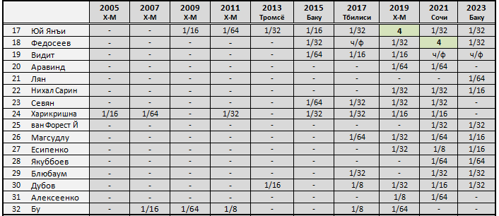 В предыдущую таблицу добавил топ-восьмерку Кубка этого года - специально показать, что впервые в первой восьмерке посева сразу пять новых имен.