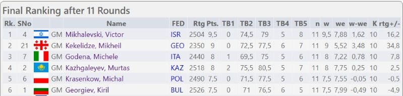 Главный вывод для меня — что я плохо расходовал время. Было много партий, где у меня были шансы, но тайминг и ритм ходов оставляли желать лучшего. Турнир получился очень неоднородным. Но если учитывать, что одна партия фактически решила разницу между вторым и третьим местом — при том, что я считаю, играл плохо, — то это, пожалуй, положительный момент.