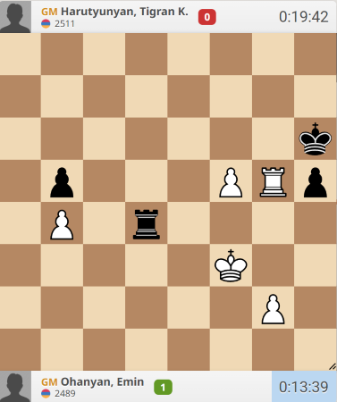 Чемпионат Армении уже не имеет такого высокого среднего рейтинга, как раньше. Но он не стал слабее! Акобян с рейтингом 2625 — самый рейтинговый участник, и у него 1 из 4.