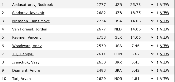 (по чесс-ризалтс он потерял 8 пунктов рейтинга, но в рамках борьбы с "фармингом" потеряет раза в два больше)