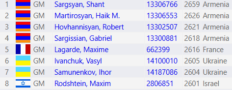 В чемпионат Европы зарегистрировались пока восемь игроков 2600+