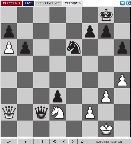 Конечно, я понимал, что моя позиция близка к победе, но не просто играть, когда на каждый ход остаётся около 20 секунд, потому что у чёрных в этой позиции есть некоторые ловушки.