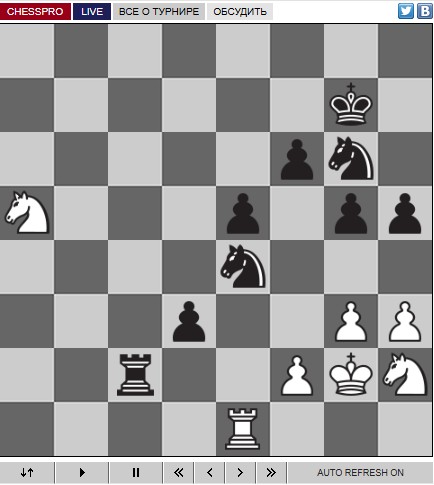 Так партия и закончилась. Теперь у тебя снова 50%. Как я уже говорил, последние пару дней были довольно сложными, особенно ошибка в партии с Нодирбеком. Знаю, что это неприятное воспоминание, но мне надо спросить — что произошло в тот момент и как ты с этим справился потом?